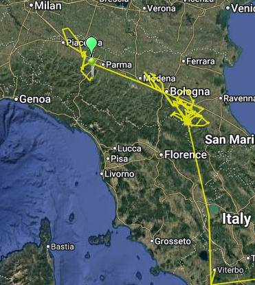 Nel corso dei suoi spostamenti, ha esplorato diverse aree, sostando per alcuni giorni nei paesaggi della Vena del Gesso (BO), storicamente frequentata dalla specie come area di nidificazione (Boldreghini, Santolini 1994), grazie alla presenza di habitat favorevoli.